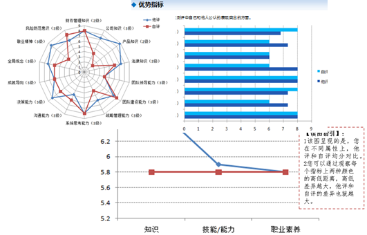 根据自评他评结果,自动生成四维度的评估建议,清楚认识自己的优势、劣势、潜质和盲区